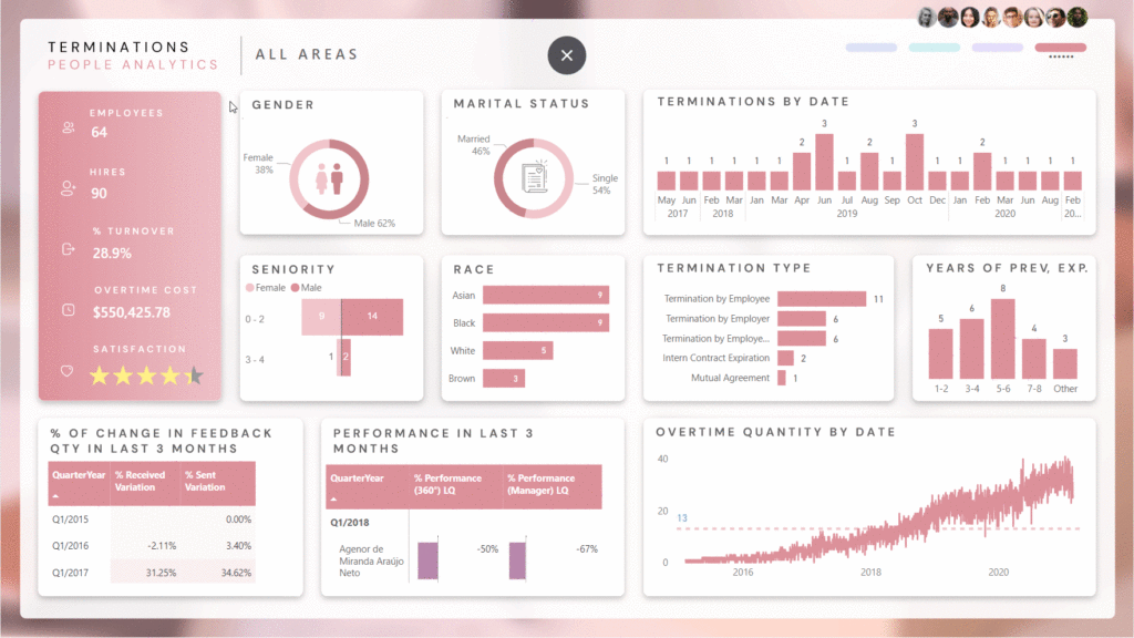 - Termination Insights: Examine trends and correlations, such as gender, workload, and termination reasons.