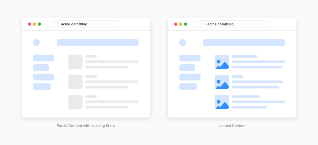 What Vercel’s team did was that now when a route is loaded, the Next.js and React runtime will be loaded together. This load can be cacheable so the runtime will not increase even if your application grows. Also, that runtime load is asynchronous, which enables the server’s HTML to progressively update the client.